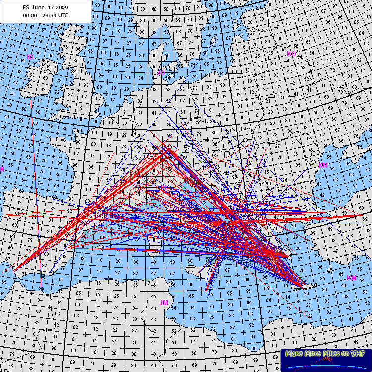 In the morning, Charles, EI5FK reported ES to EA9 and worked EA9IB in IM85. However the opening was short and spotty. Later openings were from southern EA to north east F, southern DL and north I. Southern Germany worked SV9 and north east Spain was open to LZ and TA. MUF were reported up to 150 MHz.
