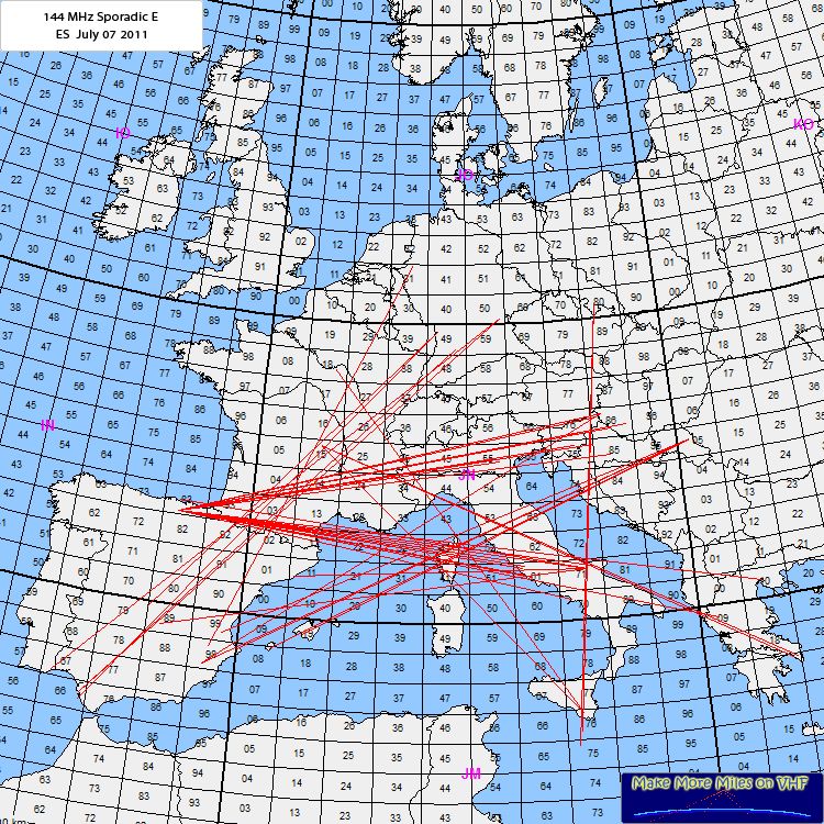 Here we go again - high MUF from the early morning scratching@100 MHz several times when BC was up to 108 MHz in UR from DL, OK, I and SV and later BC from the Med. area in mid and northern Europe. In the afternoon 144 was finally open, even EA8 was worked from DL.