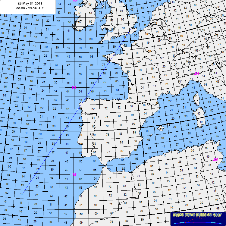 In the morning it was in here for 17 minutes, never stonger than 559 and 529/539 most of the time. It took almost 2 minutes to positively identify because the choice of keying is so lousy for weak signals. Its also about 300Hz lower in freq than last year. No actual station activity of course... Similar to last night when we had patchy Es to EA8, I am sure tropo ducting played some part on this path this morning as well since we had EA1 in on tropo late last evening, but again poor activity. 13:48 GMT: Tim,G4LOH, reports reception of the CS3BTM beacon again. |