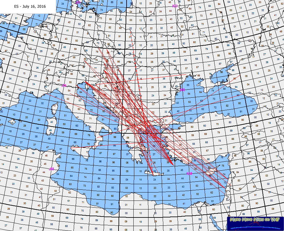 Rig: 144: 500W BF981 14el 3.6wl ODX: 2345 Km Log: 07:30 OD5KU/B KM73WD hrd 579 1st time heard 07:43 4X1RF KM72LS 599 599 CW 2345 Km ODX 07:48 SV5BYR/5 KM36VC 59 59 SSB 1619 Km Comment: UFB opening with 2 new sqr and 2 new DXCC for me. :0) Pity I lost OD5PY around the end of the opening, mainly due to my poor takeoff to SE. I guess excellent tropo duct on east Meditarranean has helped a lot today, to reach Middle East stns. 73 es DX, Massimo |