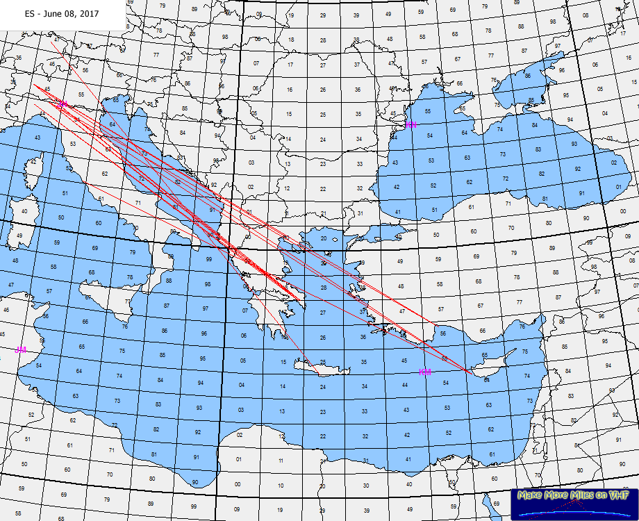 Rig: TS2000 ODX: 5B4AMR 2372Km Log: 07:42 TA4ES KM56JU 2122Km 08:24 5B4AMR KM64ET 2372Km 08:42 5B4VL KM64ET 2372Km 08:59 SV1BGR KM18VA 1545Km 09:05 SV1ELI KM18UA 1539Km 10:07 SV1ACL KM18VB 1542Km 10:10 SV2JL KN10LO 1297Km Comment: Nice event which lasted almost 3 hours. The opening was announced by several Turkish and Greek VORs that were present for all the duration of the event, even if there were no DX stations enough to satisfy the local DXer horde. Heard 4X1IF a couple of times calling CQ ES in CW. The ES season is looking good for this part of Europe. |