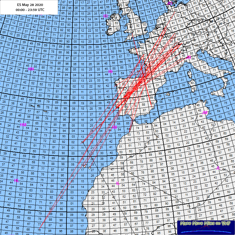 Rig: Icom IC-9700, 6ele LFA Yagi, kW Log: 16:33 F6BNX JN33 -20 +02 FT8 17:22 HB9DFG JN37 -11 -16 FT8 17:33 DF8IJ JN48 -14 -02 FT8 17:35 DH4SBM JN48 -07 -10 FT8 17:36 DF2AJ JN48 -14 -03 FT8 17:37 DH4SBM JN48 -07 -10 FT8 17:38 DF2AJ JN48 -11 -05 FT8 17:38 DH4SBM JN48 -07 -20 FT8 17:52 DF5HC JO53EP -03 -21 FT8 Comment: Murphy was here!! My rotor broke and i kept Az 210○dgr, El 15 dgr, pointing to Cannary Isl. !! All contacts were made by Ionoscatter + tropo + Es….. Terrible luck… well, thats part of the game, isnt it? All the best, CU next Es… i hope! Hi Hi Miguel CT1BYM |