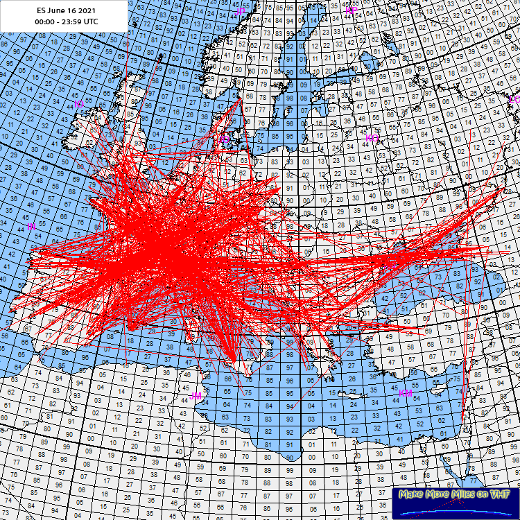 Rig: IC9700 17ele F9FT 1kw DIY 50V SSPA ODX: 1695km EA1CEZ Log: 07:39 SV1EIW KM17XX 1464km SSB 07:41 SV1WE KM18UA 1448km SSB 07:45 SV1EMQ KM18UB 1444km SSB 07:57 SV8RV KM07KS 1356km FT8 08:33 EA4T IN70XK 1651km FT8 09:04 EA1JM IN70JV 1697km SSB 09:11 EA2TZ IN83WE 1342km SSB 09:12 EA2AWD IN93CI 1310km SSB 09:14 EA1CEZ IN62PO 1695km SSB 09:17 EA1IZT IN83BK 1449km FT8 09:25 EA1IYG IN83BK 1449km SSB 09:51 EC5WR IM99VP 1474km FT8 09:59 EB5GC IM97JX 1671km FT8 10:04 EA5U IM98SR 1565km FT8 10:09 EA3IFH JN11GP 1153km FT8 10:13 EA3GLE JN11BH 1204km FT8 10:25 EA3GCV JN01VF 1230km FT8 Comment: The longest 2m opening I could participate so far in my amateur radio career. Some Sations like SV8RV where here for >1h with up to +29dB in FT8. Many thanks guys for 3 new #! Heard mayn other stations but condx changed too fast to complete FT8 qsos. |