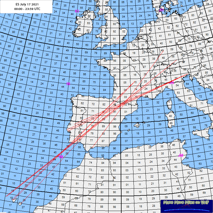 Rig: FT847 100 w 11 ele Tonna ODX: EA8CTK 2.603 km Log: 16:07 EA8TX IL18QI 2.588 km SSB 16:50 EA8CTK IL18NI 2.603 km SSB 16:56 EB8BRZ IL28HA 2.547 km SSB Comment: Nice opening : new country, new #. Incredible, EA8TX was heard for more than one hour between 53 and 59 + on 144.260 ! 73 from Michel |