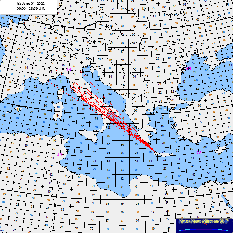 Rig: IC-9700/2x8el ODX: F1NSR 1700km Log: 09.08 IZ7UMS JN81GD 09.10 IK0XBX JN63ED 09.11 IK3VZO JN55XA 09.30 IW5BNL JN53SN 09.31 IK0WMJ JN61GW 09.35 IU0NWJ JN63 09.39 IZ5EME JN52NS 09.42 IK6DTB JN72 09.43 IZ5EME JN52NS 09.45 IK5QKE JN52GX 09.47 IW0FFK JN61FS 09.48 IK0FVC JN61FW 09.50 IK0RMR JN61HS 09.52 IZ0UME JN61IQ 09.54 IK5OEA JN53PG 09.55 IK5FKE JN53 09.56 I1DMP JN34XU 09.58 IW0FFR JN61FU 09.59 IK0ZYH JN62BJ 10.10 F1NSR JN33JK Comment: Nice opening into Crete Island. |