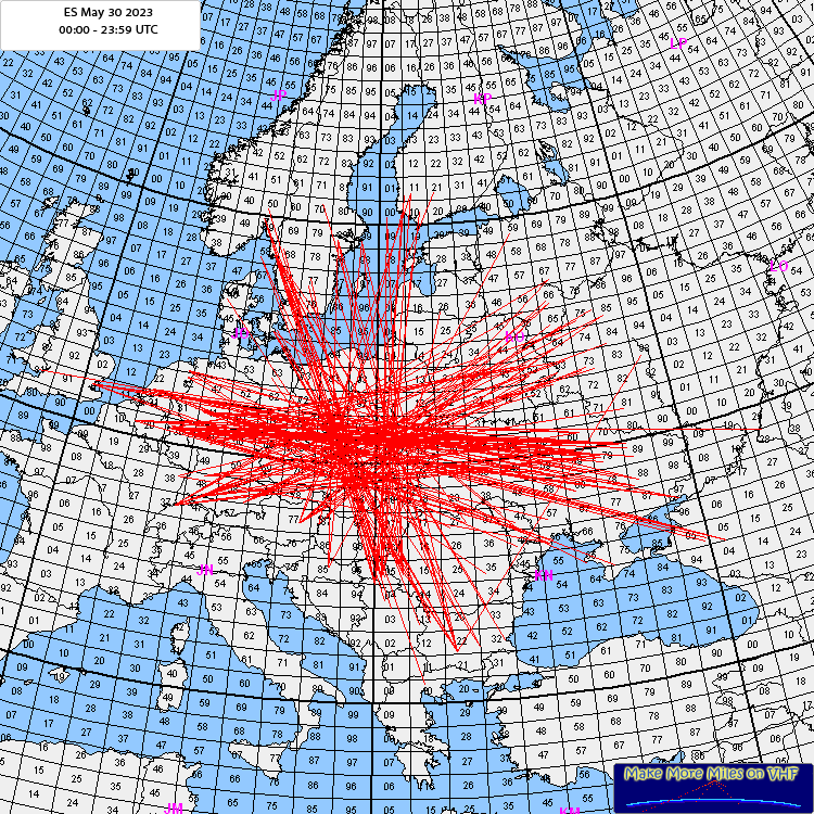 Rig: IC910H 12ele M2 ODX: 2845kms Log: 30/05/2023 08:36 UR3EE KN88 -12 -15 FT8 Comment: great to work a new# , quite rare to work that far west from here so very happy . qso is in my top 3 distance on 2m ES. decoded UT9UR KO40 but couldnt get through the DL wall. Luckily I'd just finished a feeder change and maintenance on my antennas and mast so good timing :-) |