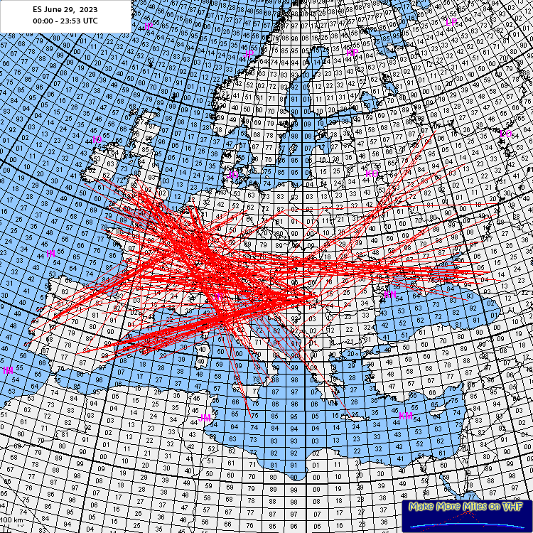 Rig: IC910H 12ele M2 ODX: 2164kms Log: 29/06/2023 17:02 9A3TN JN85 29/06/2023 17:05 9A3DUH JN85XE 29/06/2023 18:12 IZ8WGU JM88 29/06/2023 19:08 T77GO JN63FW 29/06/2023 19:44 SV8PEX JM99 SSB 29/06/2023 19:50 IK7JNM JN8ØXO Comment: Band was open on and off for 3 hrs but some very short openings making qso's difficult . Great to work Tom SV8PEX on SSB again . Very happy to work T7 , last T7 was 20yrs ago on 2m . Missed HV0A , was copied but faded quickly. 73 de jamie |
