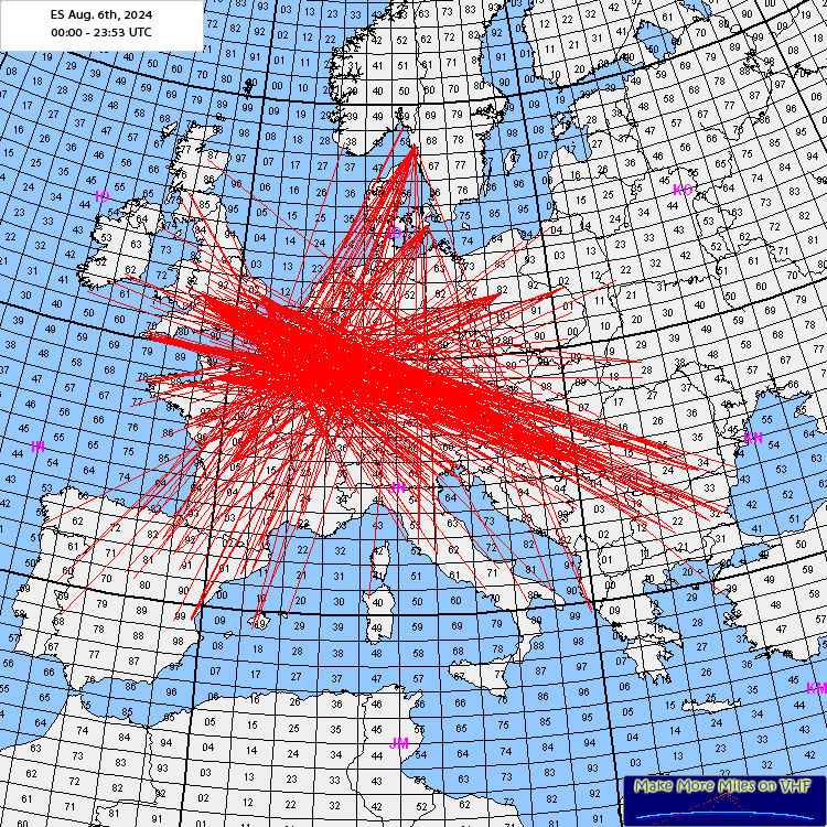Rig: IC-9700, 500W + 12el YU1CF ODX: CT7ABA IN60gd 2324km Log: 09:34 IK7FPV JN80pm 1763km 09:43 EA3SI JN11dn 1796km 09:45 EA3EDU JN01wk 1825km 09:56 EA5CVS IM99sk 2104km # 09:59 EA3AF JN01ui 1839km 10:03 EA5EF IM99sm 2099km 10:09 EB1LO IN82sk 1886km # 10:12 F6CIS IN94wl 1595km 10:13 EA2BFM IN83mg 1826km # 10:14 EA2AGZ IN91dv 1905km # 10:18 TM65JO JN03bk 1683km 10:33 EC4TR IN80er 2100km # 10:34 EA2CDY IN82vi 1900km 10:34 EC1CT IN73xd 1886km 10:42 EA2EI IN93ah 1782km # 10:44 EA2DR IN61 2174km # 10:47 F4IVC JN05kr 1435km 10:50 CT7ABA IN60gd 2324km # 11:15 EA6VQ JM19mp 1977km 11:18 EA6APK JM29dv 1941km # Comment: 20 QSO´s and 9 new squares was the result of this more than 90 minutes long ES-opening, Missed SV8PEX and some TA-stn at the start of the ES. Once again I was hrd by 7X2RF but no QSO this time! 73 and hope to CU in Persides! //SM7SPG |
