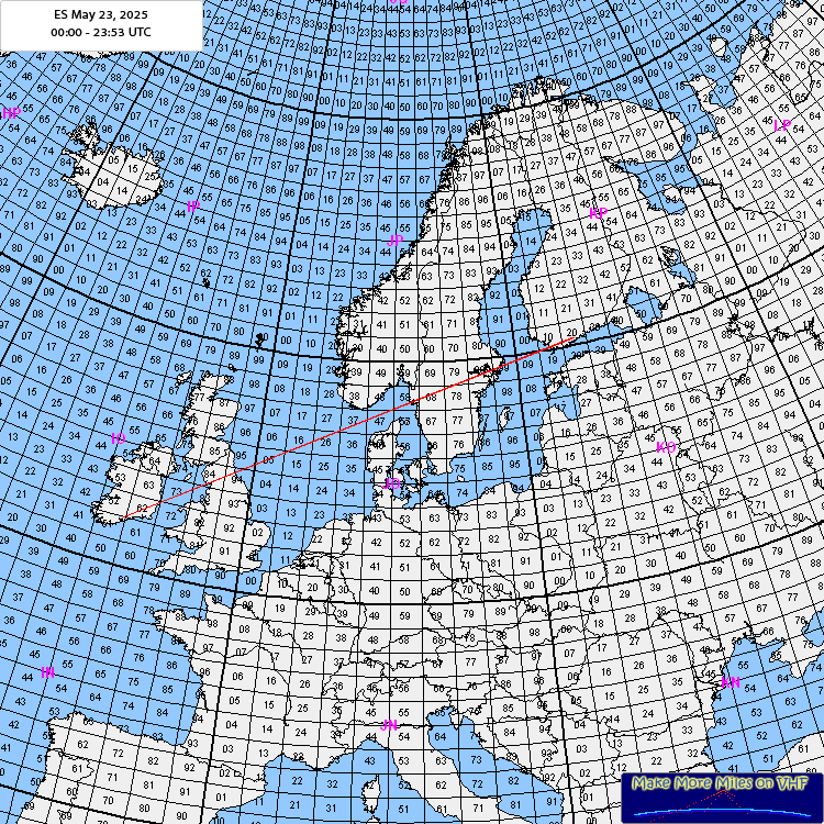 Rig: 400W, 9el ODX: OH2LIY KP20MG 2230km Log: 13:45 OH2LIY KP20mg , FT8 +02, 2230km 13:57 OH4LA KP20lg , FT8 +02 (actually 9+20dB!), 2226km Comment: Also heard OH6MAZ KP21ig 2240km, and I was "flagged" in SM4 and SM0. EI8KN in IO62 also made at least one qso. First 2m Es opening for me in 2025! 73, Mark |