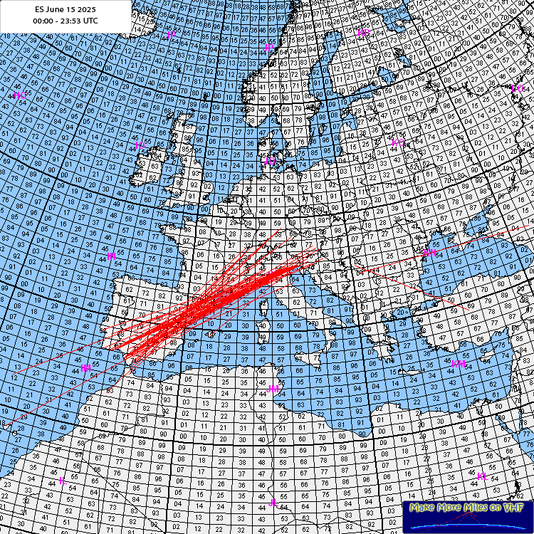 Rig: IC-9700 / 1x 7el Flexa / 500w at Ant. / Preamp, ODX: 1678km Log: 19:03 UTC EA7BHO IM87dd 1478km FT8 19:21 UTC EA7/PG2M IM76pm 1586km FT8 19:25 UTC EA7/SM0KAK IM76mm 1599km FT8 19:34 UTC EA9E IM75hv 1678km FT8 19:59 UTC EA7ALL IM88aa 1413km FT8 Comment: Already the 6th day this season from my QTH with some ES on 2m. Heard and tryed again both CN-Stations, but both were quite busy catching new stations and locators, so no big interest in me ;-). But thats under- standable and ok for me, I would do the same. :-) Again superb operation most the time: the HB9, F, I and DL-crowd on 2nd, all EAs and CNs on 1st periode. Well done again! Hope for more ES in my region so best regards in the mean time de Chris, HB9DFG |