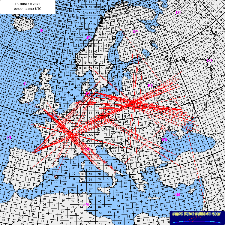 Rig: IC 9700 > 300W > 9 el Yagi ODX: RU3VV - LOØ5IO - 2253km Log: 13:41 RM5P KO84VH 2054km 13:45 R2SCL KO94BV 2082km 13:46 RZ3C LOØ4 (>2200km) 13:48 RX3DCZ KO94VO 2186km 14:01 RU3VV LOØ5IO 2253km Comment: In / out signals, but first E-s here in 2025 and more stations worked compared to 2024... |