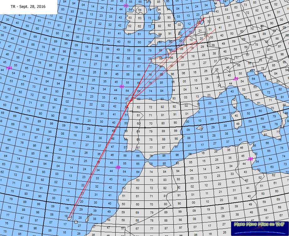 Tropo from the Canarian Islands towards France and the United Kingdom. Earlier that evening (so on Sept. 27th, EA8 was worked by several stations in G and GW. |