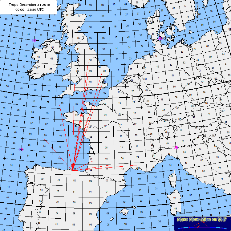 Rig: IC-7100 50w ant:DK7ZB dual yagi 5ele. 2mts/8el.432ODX: gb3ngi/b io65vb 1315kmLog: 09:11 FT8 F6IRA IN94oh11:15 FT8 F1RHS JN03pv 11:24 FT8 F1DRN JN23mt 16:32 FT8 UT1FG/MM IN66 16:43 FT8 G8EKG IO92 16:52 FT8 G8XWR IO91 16:55 FT8 G4CDN JO02 17:05 FT8 G1PPA IO93 17:06 FT8 G8EFU IO92 17:10 FT8 G4NBS JO02 17:14 FT8 G0GMB IO92 17:22 FT8 G0MBL JO01 17:25 FT8 F4FRG IN98 17:30 FT8 G3YKI IO92 17:48 FT8 G4AEP IO91 18:02 FT8 G4VPD IO92 18:10 FT8 G7RAU IN79 18:14 FT8 GW7SMV IO81 18:15 FT8 G8HGN JO01 Comment: 73 to all, year final day, enjoy tropo &start to N ..with GB3ngi/b favorite beacon ..hr to N dir. HNY 2019 |
