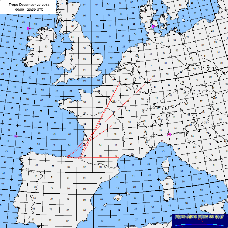 Rig: IC-7100 50w ant:DK7ZB dual yagi 5ele. 2mts/8el.432ODX: DF6PW ;JO40Log: 15:34 FT8 F0EUI JN1615:46 FT8 DF6PW JO40 17:12 FT8 F8VNU JN13qh 17:30 FT8 EA2KK IN83lh Comment: 73 to all, enjoy tropo debil, but dx DL station in tropo, no MS |