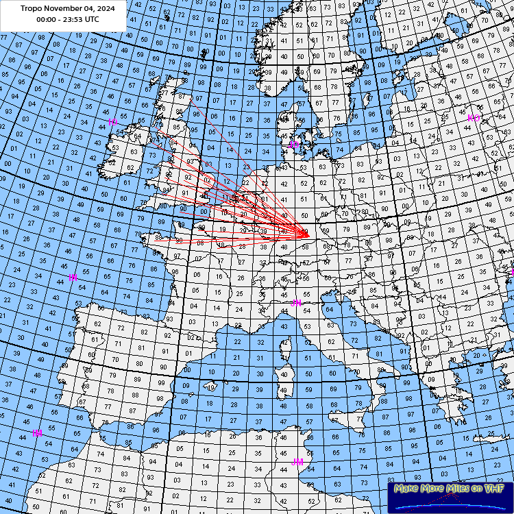 Rig: IC 9700 100 Watt 7 ele. YagiODX: 14:27 GM4YXI IO87wk 1331 kmLog: 10:22 PD9BG JO21 528 km10:26 ON1ANZ JO21 528 km 10:46 MM0CEZ IO75 1320 km 10:47 PA0LDE JO22 586 km 10:52 G6XRK IO91 924 km 10:53 F1BHB JN09 763 km 10:56 G4HUN JO02 824 km 10:57 M0DSR IO83 1083 km 10:59 F6EGD IN88 1066km 11:10 M0KSE IO83 1115 km 11:15 PD4RD JO21 528 km 11:17 PD7RF JO22 586 km 11:19 PD1BW JO22 586 km 11:21 G4DCV IO91 924 km 11:23 GI6ATZ IO74 1277 km 11:27 G0WUU IO93 992 km 13:52 PF3X JO21 528 km 13:55 G4TRA IO81 1061 km 13:57 G0AJJ JO02 824 km 13:59 OT80CLM JO11 656 km 14:03 G0VXM IO93 992 km 14:05 G6WRW IO82 1083 km 14:06 PD0MNO JO22 586 km 14:08 2E0FQT IO93 992 km 14:11 F4HZC JN09 763 km 14:11 PD1LVO JO"! 528 km 14:14 G6LUE IO93 992 km 14:18 M0CFV IO91 924 km 14:27 GM4YXI IO87wk 1331 km ODX 14:29 G3ZSS IO90 910 km 14:35 F5OVQ IN98 920 km 14:47 PC4C JO11 656 km 14:49 M0DHO IO91 924 km 15:08 G4BNM IO93 992 km 15:10 F8ATS JN18 629 km 15:16 G0FEH IO92 952 km 15:21 PA3GPU JO23 658 km 15:25 G8XVJ IO83 1115 km 15:28 M0PNN IO82 1083 km 15:30 PA1PAT JO21 528 km 15:33 G0BSX IO93 992 km Comment: Fantastic opening to G/GI/GM.Hrd MM1FEO from IP90 with -14 some minutes, but no answer...maybe next time Only QSOs over 500 km are listed Thanks to all stations! |