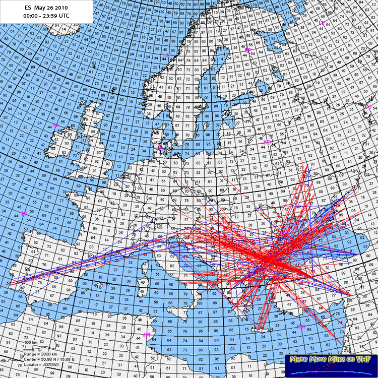 For the fourth day in row Sporadic E. An early opening between CT and S5, G, I. First signal was detected at 07.51 by CT1HZE who was monitoring IK4PNJ/B. Last signal at 08.49. There is tropo between CT and EA8 so have a good look for weak EA8 stations when ES to CT!