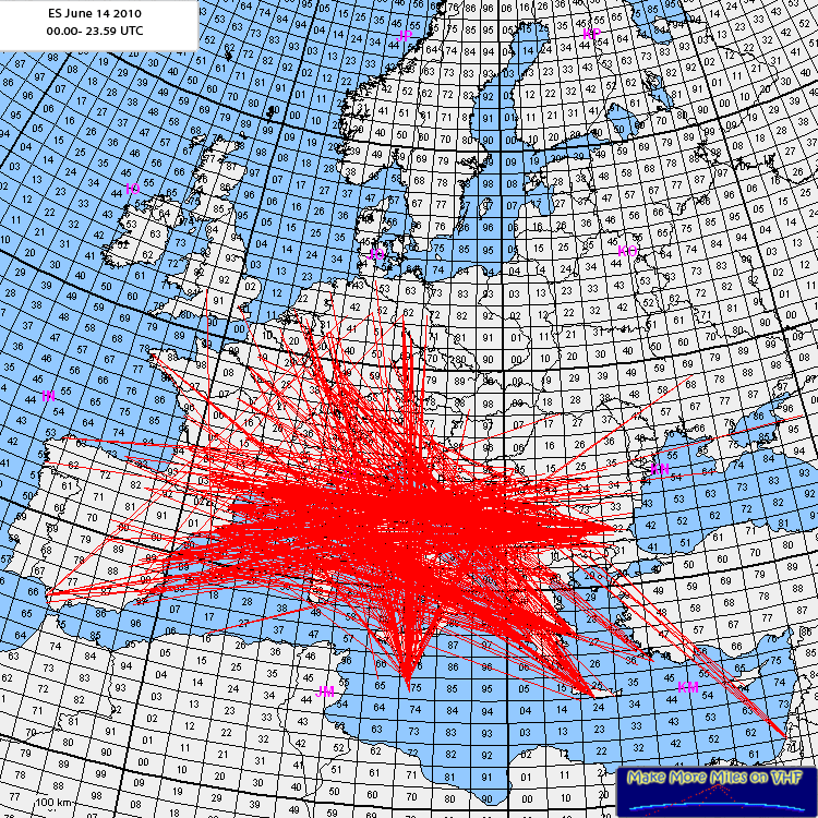 Rig: 500W - 18EL 4,2wl Log: 14:48 UR5VFJ KN69OA 14:59 EA6FB JM08PW 15:06 LZ1ZX KN32IO (NOT COMPLETE?) 15:10 EA5GZY JN00AA (SKILLED XYL OP!) 15:11 EA6VQ JM19MN 15:13 EA4AZZ IN80AR 15:18 YO4FYQ KN44FD (NOT SURE IF COMPLETE) 15:27 LZ1ZX KN32IO NOW SURE C! 15:32 UY5HF/P KN55DX WKD 2 TIMES MS&ES IN THE SAME DAY! 15:32 YO4FYQ KN44FD NOW COMPLETE QSO 15:48 EA4LU IM68TV 17:10 F/DL1GI IN77 (DISAPPEARED) 17:17 F6HKM IN78RJ 17:27 F8DBF IN78RI Comment: two openings. the first on both sides EA and balcans, I hold antenna toward balcans, two nice short range contacts. |