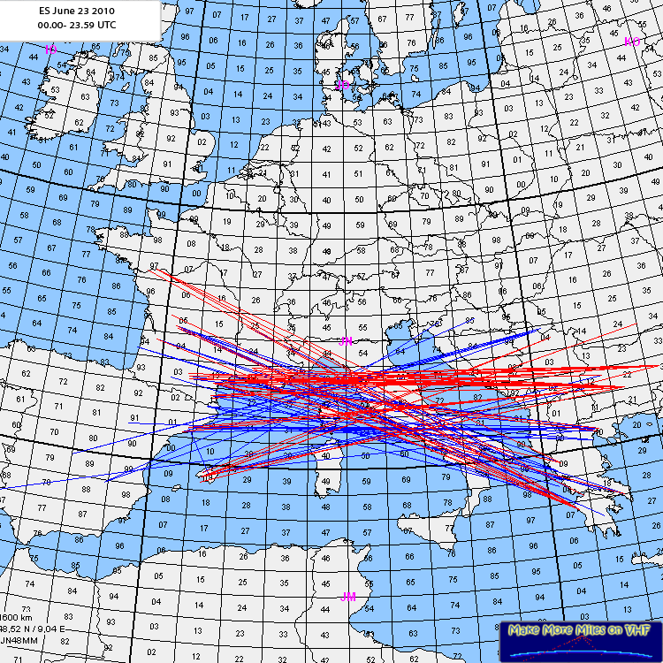 Rig: 144: 500Watt 4x 9el MGF1302 ODX: EA5MT 2011 km Log: YT3I (KN05hp) wkd via Es on 144MHz 2010.jun.23 18.57 EA6SA 559 559 JM19lo 1593 km 19.01 EA3GP 59 59 JN01sf 1645 km 19.07 EA5MT 59 59 IM88wv 2011 km HRD: EA6VQ and EA6SA on FAI 275 gr MNI TNX 73 frm Pista |