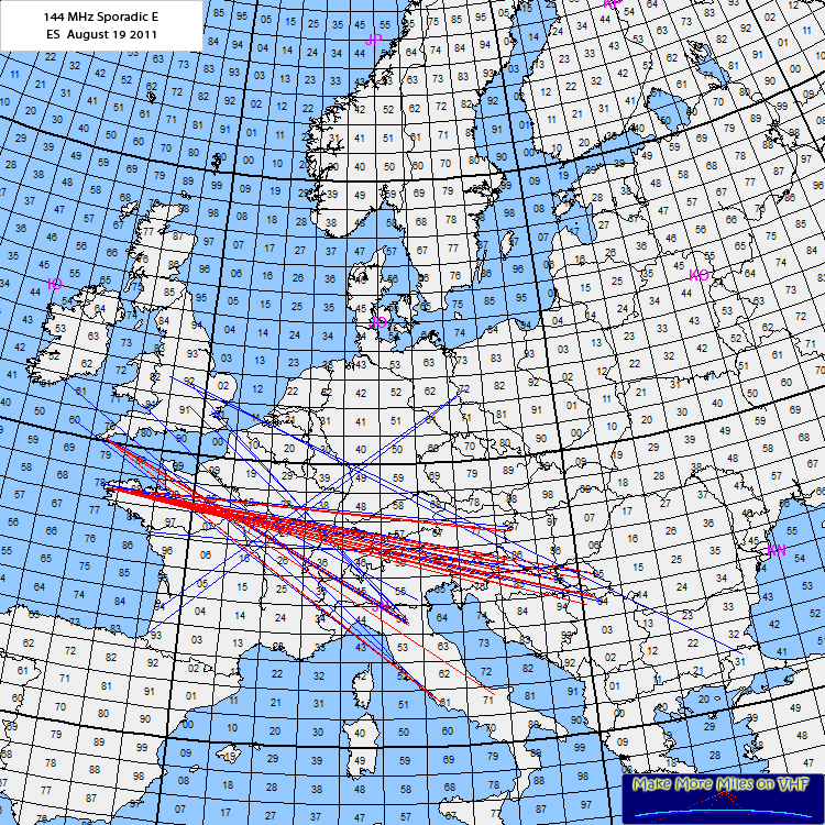 Sporadic E today. Around 16.50 UTC the band opened and a reflectionzone was located over France.