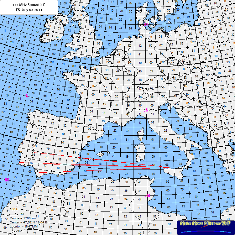Rig: IC-7400 + CF300 + 18el 480m asl ODX: CT1HZE 1959Km Log: 03 JUL 2011 16:49 EA7DL IM87CS 1507 03 JUL 2011 16:52 EA7BYM IM66UM 1749 03 JUL 2011 16:53 EA5HB IM98WX 1178 03 JUL 2011 16:55 EA7ERS 03 JUL 2011 16:58 CT1HZE IM57NH 1959 03 JUL 2011 16:58 EA4GDA IM68MU 1771 Comment: Very spotty ES opening; all signals was very weak; only Joe, CT1HZE was over 59+++ |