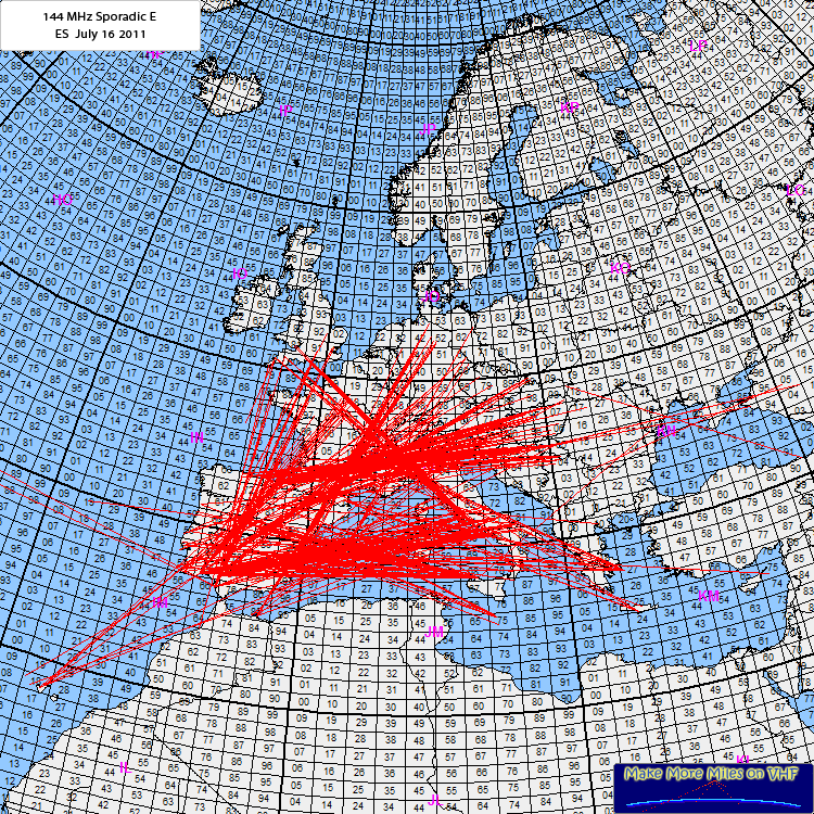 Two hot spots made ES going on this morning...and the Es lasted for many hours today. More openings in the afternoon and the evening, that was probably the best Es day in 2011? Joe, CT1HZE was trying to cross the pond on 144.200 (US-calling QRG) when MUF was high above the Atlantic but no reply. So we still have to wait until the Brendan Trophy will go to the proud HAM doin' the job.
