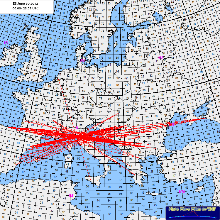 Rig: TS790E + 3cx800a7 + cc18 Log: 15.44 UR3EE HRD 59 IN-OUT IN 5 SECONDS 17.58 F6BEG 59 59 JN25JS very short path, maybe a sidescatter 17.59 F6EAS 59 59 IN98LV Comment: Only marginal reflections here... scatter point was not favourable to me Lost UR3EE in difficult qso with another I8 stn.... This year it looks as Es is dead! |