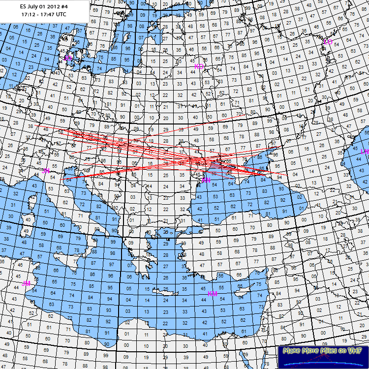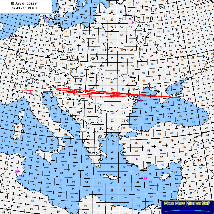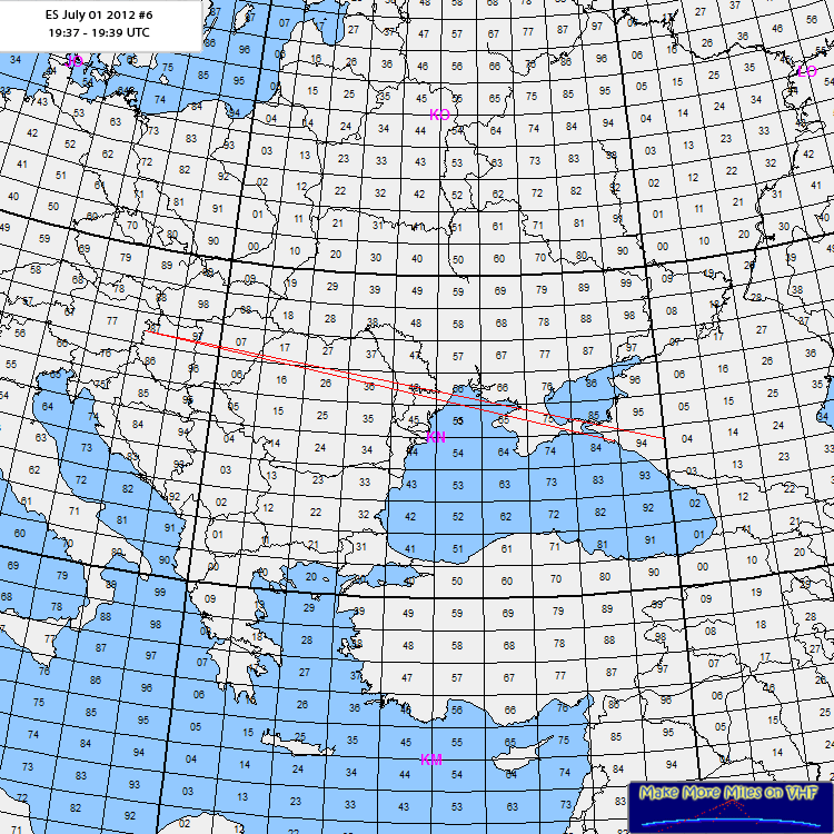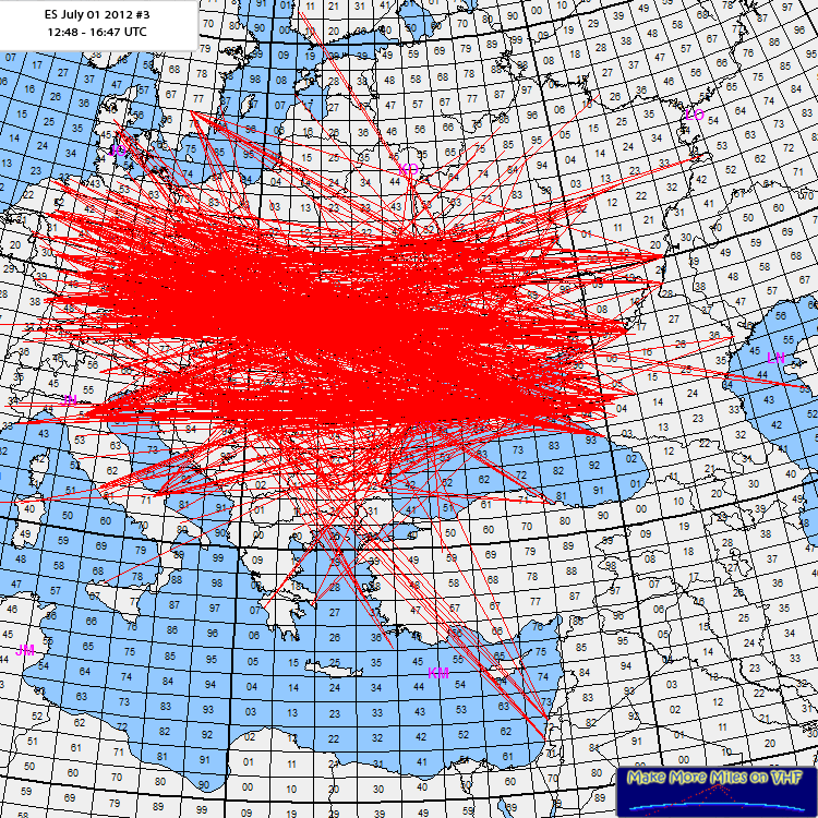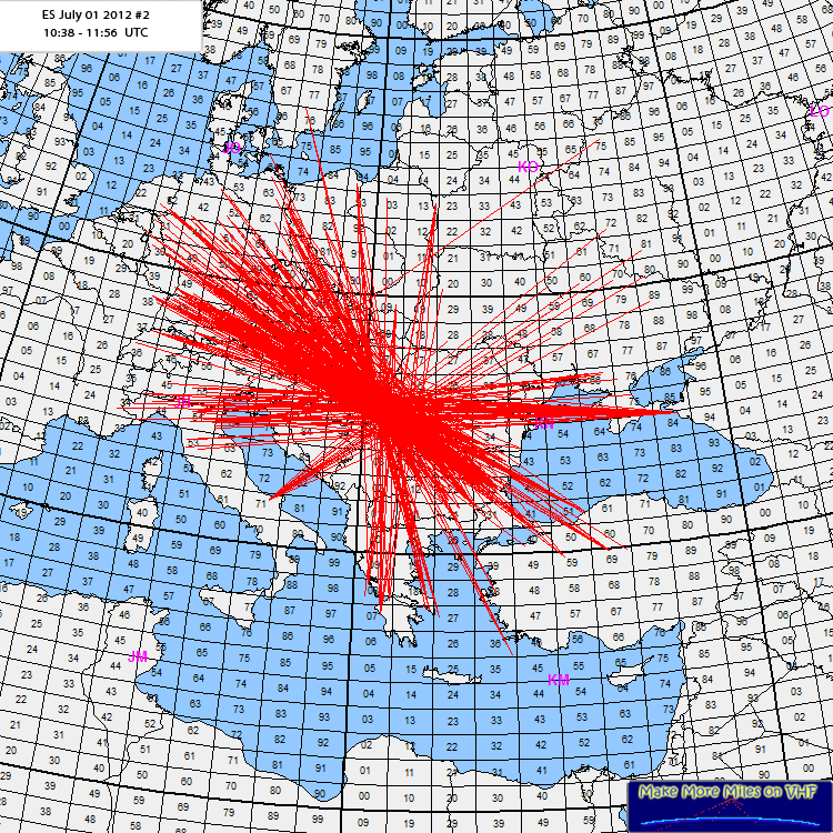 Rig: Ant: 9-el(2wl)., Pwr-50W ODX: 4Z5LY km72ms 2491km Log: 10:46 SV2JL kn10lo 1456 10:52 SV6KRW km09kp 1576 10:53 SV8BUS KM08it 1670 10:55 SV3BEF KM07RQ 1788 10:57 SV3CYM km08vf 1725 11:03 SV3JZS KM07rp 1792 14:12 RZ6MB ln17cm 1463 14:20 4Z5LY km72ms 2491 Comment: The second ES in 2012 for me and my best DX 4Z5LY for me to 2m! |