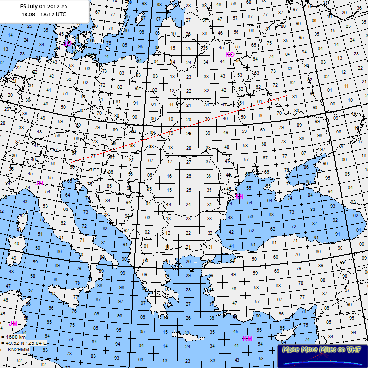 Rig: IC-910H 100 W X-200 vertical ODX: LZ3GM KN32RL 1572km Log: 11:04 LZ1ZX KN32IO 1514km 11:07 LZ3GM KN32RL 1572km 11:14 TA2AD hrd (weak) 14:22 UA3WM hrd (loud) 15:21 LZ1KJ hrd (loud) Comment: The 2nd ES for me this year, agn with poor equipment, only X-200 vertical. I heard some stations from UA6 in QSO with other stations, but weak. UA3WM was strong, but no chance in the pile up (:. LZ1ZX was in here for more than 30 min (!). On 3m I also heard SV & TA Broadcast with good signals. Congrats to all, who were able to work UA stations ;) from DL. |