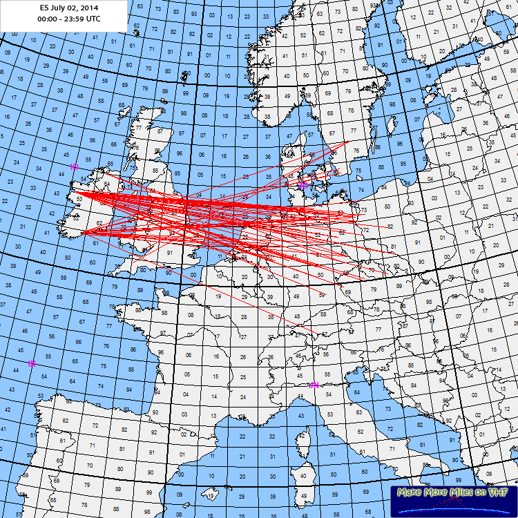 Rig: 11el LNA 1k Log: 18:38 EI7IX IO53ft 1508km Comment: First 2m Es in 2014 (the latest 2m Es opening in 41 years) |
