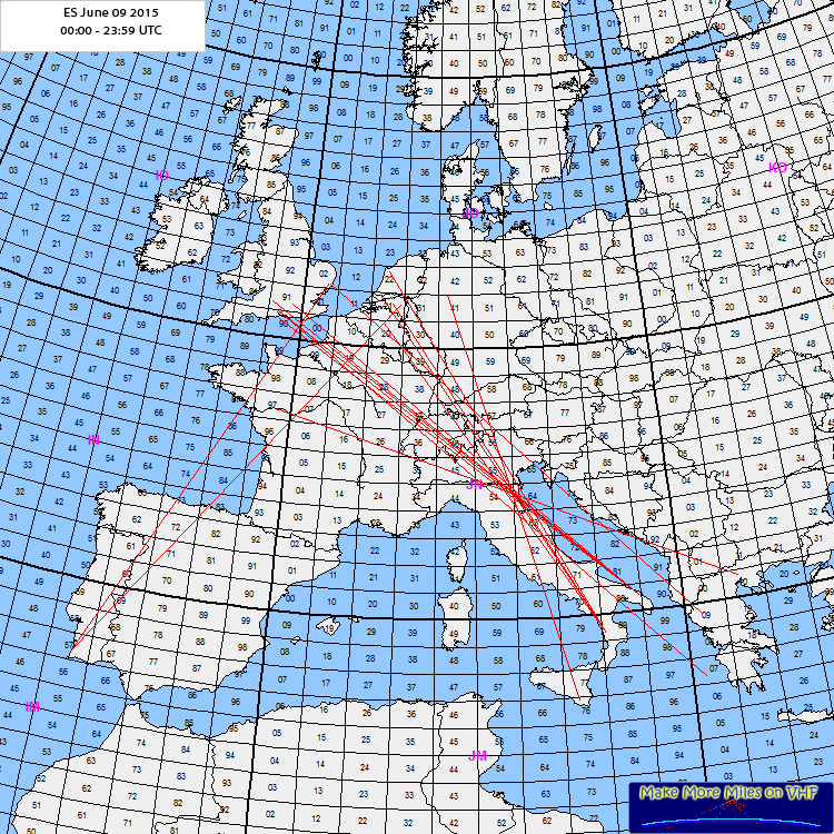 Rig: Elecraft KX3/Elecraft XV144/BECO 750W/Ant 8elm I0JXX ODX: 1749 km Log: 13:31 IT9CJC JM76IW 1749 km Comment: Short opening ES. |