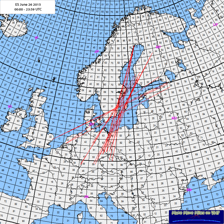 And another day with Es on 2 m. The cloud was in a fairly northerly position, as even SM2CEW was able to access it. The number of worked QSOs is rather low. Was this due to low activity in UA1 or was the band not really open into that area?
