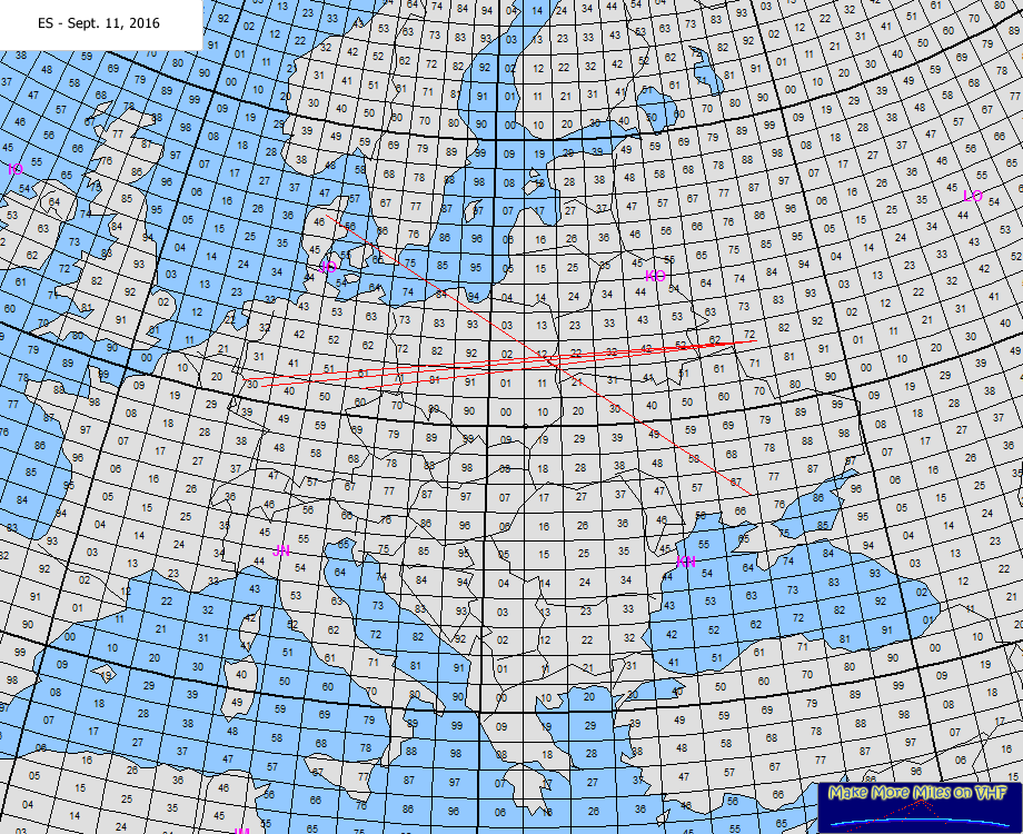 Rig: TS2000 + 2xLDMOS + MGF 1302 ODX: 1931 km Log: 11.12 UA3WM KO72QI 55 59 1931 km Comment: A nice surprise late in the Sporadic E season! UA3WM was the only station copied here, after our QSO then rising to S9 for some 10 minutes CQing without response. Except for my neighbour DL2OM (JO30SN) who was informed by me via whatsapp and worked him at 1116Z running only 40 W drive to his 4 x 12 ele M2. |