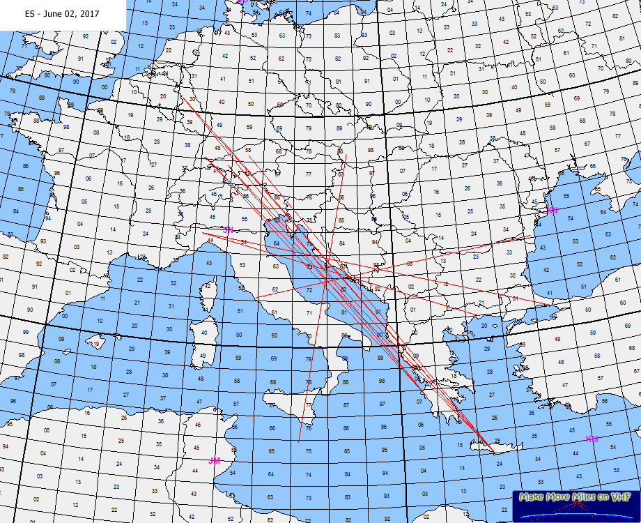 Rig: K3, Beko HLV-160, DK7ZB 3-Element (2/4/6m Interlaced) ODX: 2018km Log: 16:05 SV9CVY KM25KA Comment: First ES for me in 2017 |