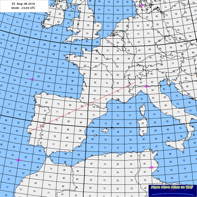 Rig: TS2000+500W 2X16el ODX: CT1DIZ 1616km Log: 17:11 CT1DIZ IM58kp 1616Km Comment: Another micro event announced by the presence of Moroccan VOR and Espichel (Portugal) VOR after hours of silence on the band. Apparently just I1DMP, I2FAK and me exploited the SP located on the Pyrenees. Once again we demonstrated how small the Scatter Point irregularities should be. While I was copying CT1DIZ in IM58, I1DMP (80Km South of my home) did a qso with CT1FFU in IM59, replicating the 80Km (inverse direction after crossing the SP) in Portugal. Obviously I was not hearing CT1FFU and I1DMP was not hearing CT1DIZ. This condition has been verified several times by Paolo and me and it has been jokingly named the "80Km rule" Hopefully August will provide some more fun 73, Mario |
