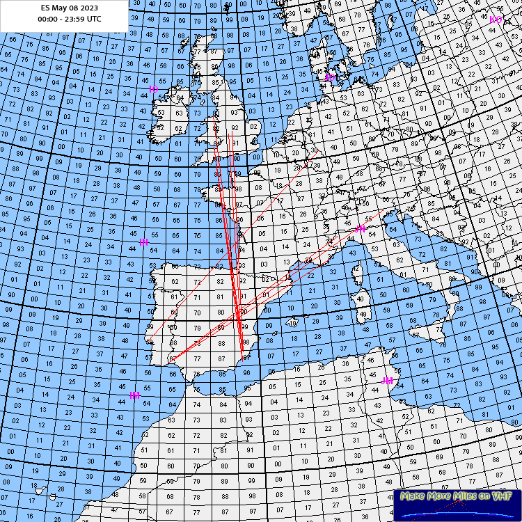 Rig: ICOM 9700 - 6 element Quad - 100 W. ODX: G4HGI Log: 16:49 GW7SMV IO81 16:52 GW4HDF IO81 16:55 G4HGI IO83 17:12 G4EZT IO92 Comment: First sporadic of the season EA - UK. Very short but very strong signals. Thanks for the QSOs. |