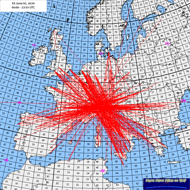 Rig: SDR FDM-DUO + LT2S , LNA PGA-103+, 500W, 16JXX antenna ODX: CT1ANO IN51RE 1843 km Log: 14:40 CT1ANO IN51RE 14:45 EA2DR IN83MH 14:51 EA1VIL IN70XH 14:53 EA1U IN83GJ 14:55 F6GRA JN04DB 14:57 EA1AER IN72 15:11 EA1NL IN52 15:15 EA1IOK IN62 15:33 EA1HRR IN83 15:51 F6CIS IN94JP 15:55 F1GTU JN05 15:57 F6FPT JN04JU Comment: Hi, 1st opening ES of the season. Very high MUF at the end infact I had very short qso with french station. I heard but not qso with CT1DZY , EA1TX, EA1S, F4FDR, EA2EI, F5GHP, F8DBF, EA2BFM and EB2DJ. At 18.30-18.35 I heard also G4SWX and OQ4U but it was probably iono scatter. 73 de Gigi IV3GTH |