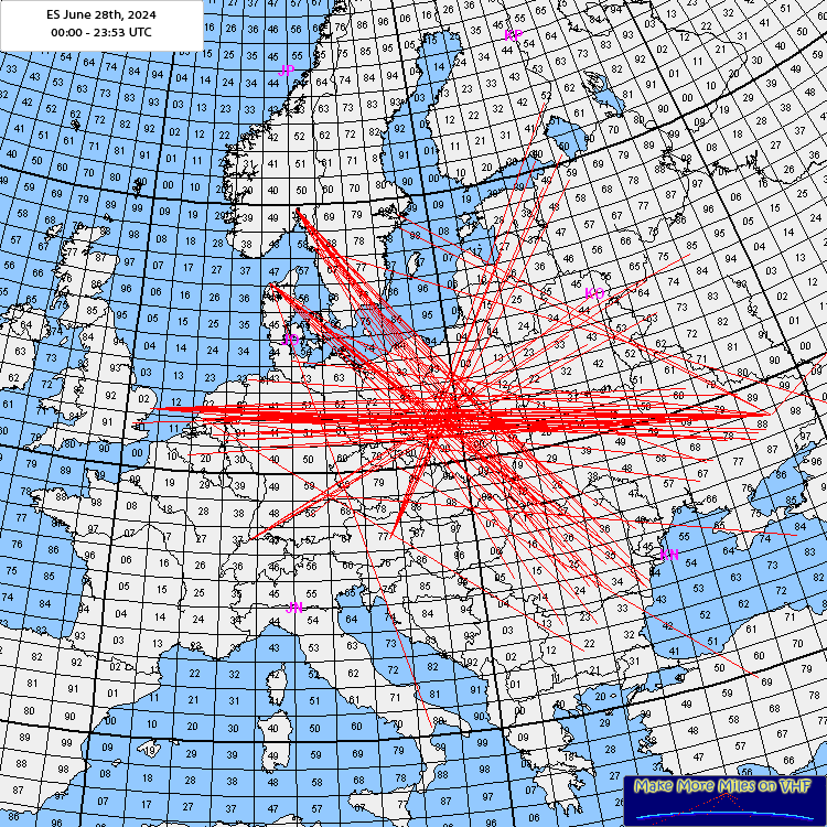Rig: Icom IC9700 - 4x14 - kW ODX: 18:28 RA1AGX KO59 Log: 18:28 RA1AGX KO59 Comment: I was too close to most openings that day. In addition I had to winch down the antenna and QRT for several hours due to an avalanche of thunderstorms and high winds. After the last one, I restarted at the end of an opening here, which resulted in one signle QSO, but many many others in Europe enjoyed a very nice Es opening. |