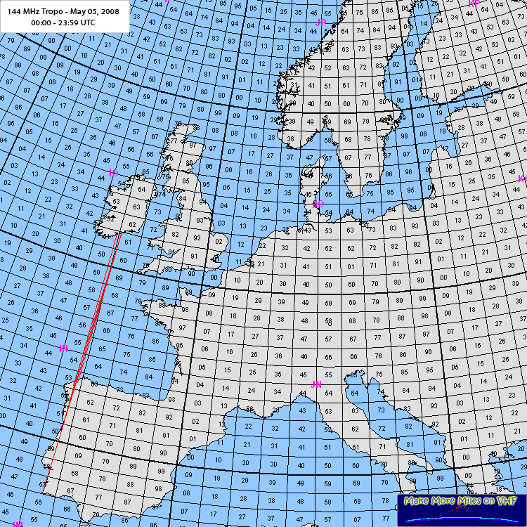 On May 5th there was strong tropo between EI/G and CT/EA. Even EA8AVI was heard very weak by Robbie, EI2IP.