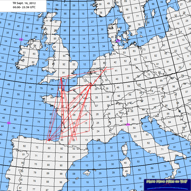 Log: 144MHz EA2TO/1 IN83fd16/09/12 05:34 F8IQS IN99RI 727 16/09/12 05:41 PA4VHF JO32JE 1.265 16/09/12 05:42 DK3EE JO41GU Dupe 16/09/12 05:44 F4EGA JO10QK 965 16/09/12 05:48 DG0VOG JO60QU 1.536 16/09/12 05:48 OK1FD JO60CF Dupe 16/09/12 05:51 OK1TEH JO70FD 1.573 16/09/12 05:53 G4FUF JO01GN 984 16/09/12 05:55 F0FIG JO10JE 919 16/09/12 06:23 F6ELI IN94TS 311 16/09/12 06:26 M0BTZ IO90GX 885 16/09/12 06:27 F4FRQ JN37KQ 955 16/09/12 06:28 F4ASK/P IN96HI 395 16/09/12 07:14 OZ4VV JO46QU 1.775 16/09/12 07:16 F0GOW IN96TT 477 16/09/12 07:18 F/N2NEH IN97EE 474 16/09/12 07:20 F5DQK JN18GR 778 16/09/12 07:26 G3TA IO81XS 965 16/09/12 07:28 M1DNJ JO01FJ 965 16/09/12 07:28 F4HBY IN97AT Dupe 16/09/12 07:30 G3SMT IO82KV 1.084 16/09/12 07:31 F5FMW JN13DX 479 16/09/12 07:44 G4ALY IO70VL Dupe 16/09/12 08:02 F0FOE JO20JD 1.003 16/09/12 08:03 F4FCW JN38FO 982 16/09/12 08:08 I3MEK JN55SJ 1.224 16/09/12 08:19 F0CYF IN98DC 569 16/09/12 08:54 DK1MG JN39HK 1.046 16/09/12 09:00 PA2DW JO22GD 1.167 16/09/12 09:02 DL8AKI/PJO51CH 1.375 16/09/12 09:03 PA0BVM JO21RO 1.157 16/09/12 09:04 M1APC IO70VM 821 16/09/12 09:12 PA1IJF JO11TL 1.071 16/09/12 09:13 F5KFL JN06CQ 492 16/09/12 09:20 OK1DOL JN69OU 1.478 16/09/12 09:23 DK1FG JN59OP 1.338 16/09/12 09:32 PA3DOL JO22MT 1.248 16/09/12 09:33 F1GGS JN15OV 616 16/09/12 09:35 F0FYP JN37LO 957 16/09/12 09:42 DF0MU JO32PC 1.282 16/09/12 09:52 F0FVK JN18IB 731 16/09/12 09:57 PA2CHR JO32DB 1.233 16/09/12 10:08 F9IE IN86WW 436 16/09/12 10:11 F4BMT IN96JU 451 16/09/12 10:18 F1AKE IN97EE 474 16/09/12 10:20 DF0HF JO50SF 1.389 16/09/12 10:21 F5MNH/P IN97EF 478 16/09/12 10:23 F6DCD/P JN38RQ 1.048 16/09/12 10:59 DF5HC JN49HT 1.187 16/09/12 11:00 DL8II JN49GP 1.172 16/09/12 11:02 F0ERP JN28BG 823 16/09/12 11:09 DL1BFR JO32MO 1.311 16/09/12 11:11 M0VXX/P IO82RJ 1.031 432MHz EA2TO/1 IN83fd 16/09/12 06:12 OK1TEH JO70FD 1.573 16/09/12 06:15 F9DX/P JN14SP 591 16/09/12 06:16 F5GXX IN95LP 341 16/09/12 06:18 F4BWJ IN93MP 216 16/09/12 06:19 F6APE IN97QI 520 16/09/12 06:22 F1BOC/P IN96MV 463 16/09/12 06:36 F5HVI IN98NP 645 16/09/12 06:38 G4EZP JO01GN 984 16/09/12 06:40 F4ULC JN06FU 518 16/09/12 06:42 F4FEY IN97EF 478 16/09/12 06:44 F5PDM JN18KJ 766 16/09/12 06:46 G0JLO IO81WM 937 16/09/12 06:48 F1CBC JN09BO 771 16/09/12 06:50 F5AXP JN03RQ 408 16/09/12 06:51 M0BPQ IO91WP 979 16/09/12 06:52 ON4POO JO20DP 1.023 16/09/12 06:53 M0BTZ IO90GX 885 16/09/12 06:54 F1BJD/P IN98WE 620 16/09/12 06:56 F5JJE IN95JV 357 16/09/12 06:57 F5SUL IN87XH 478 16/09/12 06:58 F6IFX JN07CX 611 16/09/12 06:59 EA1HRR IN83JJ 39 16/09/12 07:03 F1AIW JN06ER 503 16/09/12 07:08 F8BBR JN06ET 511 16/09/12 07:32 F5FMW JN13DX 479 16/09/12 07:33 G8VHI IO92FM 1.052 16/09/12 07:34 G4FUF JO01GN 984 16/09/12 07:35 G3XDY JO02OB 1.052 16/09/12 07:46 G4ALY IO70VL 817 16/09/12 07:49 F5KEM/P JN04QW 440 16/09/12 07:55 F6FZS/P IN93OA 224 16/09/12 08:23 F8BRK IN99VF 723 16/09/12 08:26 F5FLN IN94SR 303 16/09/12 08:28 F5BCZ IN95QJ 341 16/09/12 08:31 F4CWN JN03KN 360 16/09/12 08:32 G7RAU IO90IR 860 16/09/12 08:34 G3LQR JO02QF 1.074 16/09/12 08:36 GW1MCD IO81LP 945 16/09/12 08:43 F6DZR IN96RT 471 16/09/12 09:45 DF0MU JO32PC 1.282 16/09/12 09:47 G6HIE IO90SU 888 16/09/12 09:49 LX2LA JN39CP 1.038 16/09/12 09:54 F1GGS JN15OV 616 16/09/12 10:00 PA2CHR JO32DB 1.233 16/09/12 10:01 DF2VJ JN39LI 1.060 16/09/12 10:02 F2FZ JN04HC 352 16/09/12 10:50 F6AJW/P IN93EK 158 Comment: Nice tropo opening from North EA to PA-OZ-SM and DL-OK too !!In 144MHz heard nice signals from beacons in F-G-ON-PA-OZ-LA, I remember F5XAM/B HB9HB/B GB3NGI/B GB3VHF/B PI7CIS/B OZ7IGY/B ON0VHF/B ODX LA8VHF/B 519 JO48XX 1987km. |
