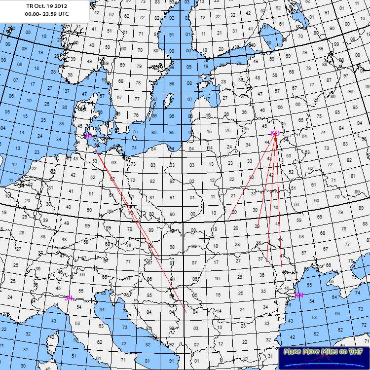 Rig: TS2000 144Mhz:4x9el DK7ZB Yagi 18dBd/ 432Mhz 2x20el X-Yagi MasproODX: OM3BH JN87WV 719kmLog: 19.10.2012 18:40 OM3BH JN87WV 719kmComment: QSOs over 500km.nice, many stations from Germany on 2m ssb (to work DOKs...) |