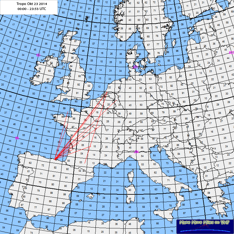 Rig: ICOM 7100 sq9vpa dual yagi 5+8 40watts vhf 25w uhfODX: CW;PA3BIY;JO22HB;1126 RX onlyLog: 17:51 144 SSB F5GXX FRANCISCO IN95LP 30317:51 144 SSB F1AIW JEANLUIS JN06ER 465 17:51 432 SSB F1AIW JEANLUIS JN06ER 465 17:53 144 SSB F6AQJ JEANLUC JN18VA 748 18:08 144 SSB GJ7DNI STEVE IN89VE 649 18:36 144 SSB F4HBY LAURENT IN97AT 501 18:55 144 SSB F5OYS PATRICK JN05DR 380 19:13 144 SSB F4EGA PATRICK JO10QK 928 RX 19:21 144 SSB F6GJV/P ANDRE JN15FL 506 19:28 432 SSB F6GJV/P ANDRE JN15FL 506 20:15 432 SSB F6GPT JUANMARCO IN94SW 278 21:10 144 SSB DC1EI PAUL JO31FC 1124 RX 21:24 144 CW PA3BIY PETER JO22HB 1126 RX 21:50 144 SSB F0FVK SYLVANO JN18IB 693 Comment: 73 to all band good to work Nto Ne, my modeste antena weak to DX tropo. |