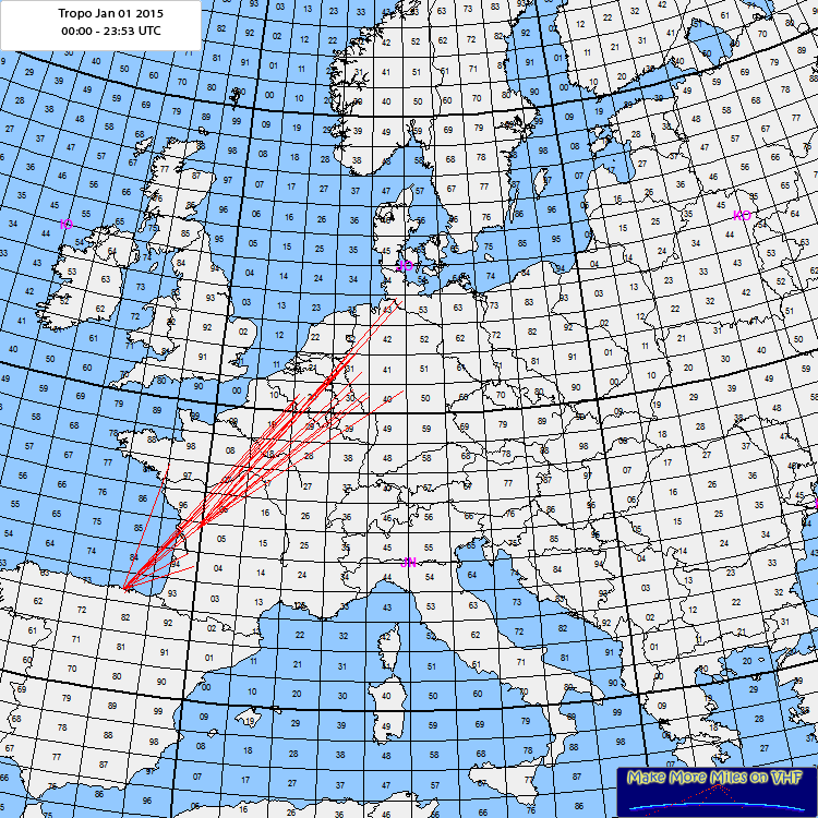 Rig: IC-7100 yagi dual 5 elem vhf 8 uhf, 40watts vhf 15w uhfODX: DF0MU,JO32PC;1245 kmLog: 19.01 144 SSB DL6YBF HELMUT JO31OX 1230 Km 19.03 144 SSB DF0MU HELMUT JO32PC 1245 19.11 144 SSB F4HBY LAURENT IN97AT 501 19.16 144 SSB ON4POO MICHEL JO20DP 985 19.24 144 SSB DK5G DO9MR RALF JO20DP 985 19.42 144 SSB ON4KNN JO20HL 986 20.14 432 CW DG1KJG JURGEN JO30NT 1135 20.46 144 SSB F0FVK SYLVANO JN18IB 693 21.04 144 SSB F6GPT JUANMARCO IN94SW 278 21.06 432 SSB F6GPT JUANMARCO IN94SW 278 21.13 432 SSB F5EAN J.MICHEL JN06CP 450 21.49 144 SSB DD0PX Wolf JO30WR 1168 22.36 144 SSB F6CIS SILVIAN IN94WL 275 Comment: 73 hny to all, good tropo duct,1000 Km or more, DL fb on 432 Mhz. |