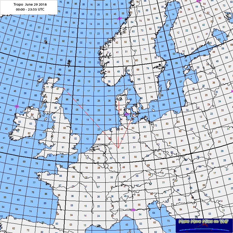 Rig: 150 Watts 9ele TonnaODX: 938kmLog: 05:47 GM6VXB IO97AQ15:07 OZ1BP JO55QA 15:18 OZ1JMN JO46IJ Comment: still nice Tropo condx... |