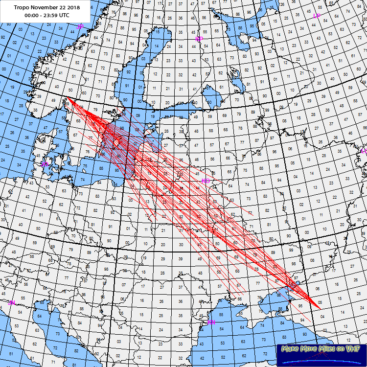 Rig: IC-745 PA 4xRA60ODX: 144 - SM4GGC 2440 km, 432 - LA0BLog: 144 mhz:15:42 SM5CUI JO89ww FT8 2262 km 16:27 SF6F JO67qs FT8 2360 km 16:58 EW8AAA KO42 FT8 17:55 EW8A KO42 FT8 18:09 SM4GGC JO69rk FT8 2440 km 18:23 SM0MLZ JO99fm FT8 2208 km 19:09 SM7THS JO76wu FT8 2182 km 432 mhz all CW: 18:19 LA0BY JO59ix 2604 km 18:55 SM4IVE JO79sd 2321 km 19:10 SK0EN JO99jx 2224 km 19:18 SM7GVF JO77ga 2262 km 19:24 EW6FS KO35lb 1499 km 19:26 YL3AG KO26av 1773 km 1296 mhz CW: 19:37 SP4MPB KO03ht 1763 km 19:55 SM7GEP JO77ip 2283 km HRD: SK0EN, EW6FS, but QRM from Sweden station (Hi!) not able to make QSO. Comment: It was fantastic TROPO opening for many years, maybe the best!Looks, like ES, but more stable and exelence distance. Started on 144 mhz in FT8 with weak signals, in 2-3 hours spread on 432 and even on 1296 mhz! More remarkabe was QSO on 1296 mhz with my new ODX 2283 km, never hope that distance. One is bad - i switched on 23 cm band too later, after peak. On 432 mhz also my ODX LA0BY 2615 km, during 2,5 hours with good signal. Is seams, propagation 432 and 1296 was stronger, then 144. Thanks for all for nice evening! Alex- RZ6DD PS: Have audio records MP3 my QSOs with LA0BY(432), SP4MPB, SM7GEP(1296). |