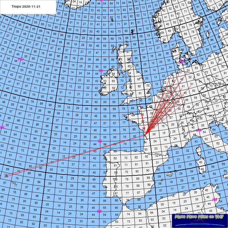 Rig: IC9700 - 75w -, 9Elts YagiODX: CU3EQ 2300km (SSB)Log: 08:03 F8EMH JN29VL 64709:57 DL4VAI JN39 723 10:01 F5TAB JN29 609+ 10:02 DL5FCW JO40 903+ 10:04 OS0S JO20 689+ 10:05 G4VQZ IO90 542+ 10:14 F4FED JO10 609+ 10:21 DJ5AR JN49 848+ 10:25 DF2ZC JO30 790 10:27 DK9TF JO31 866+ 10:42 DL6YBF JO31 866+ 11:08 LX1BH JN29 609+ 18:47 DM2HB JO41 968+ 18:47 DL1MTG JO31 866+ 18:48 PA5MS JO21 777 18:49 ON8SV JO20 689+ 18:51 DL8EAY JO31 866 18:52 PA3PCV JO20 689 18:55 PA5M JO21 777+ 19:01 DL4LAB JO53 1215+ 19:04 DF2VJ JN39 723+ 19:05 DJ0KF JN39 723+ 19:07 DB9JH JO31 866+ 19:21 DL6BF JO32 949+ 19:23 DD7DAC JO31 866 19:34 DO3BST JO51 1081+ 19:40 DG6JF/P JO33 1037+ 19:43 PH0TV JO32 949+ 19:50 DL1PB JO40BQ 861 20:06 ON3TDM JN29FW 613 20:25 DL4AO JO42 1041+ 20:27 PC9F JO32 949+ 20:28 CU3EQ HM68 2293+ 20:30 DB7EE JO31 866+ 20:31 ON8SV JO20 689+ 20:34 DH8BAO JO43 1120+ 20:37 PE1NGR JO31 866+ 20:41 ON4POO JO20 668 20:52 CU3EQ HM68KP 2300 21:05 ON5PU JO21 777 21:39 F0DBU IN98LQ 339 21:50 DK0VHF JO41 968+ 21:54 PA5Y JO21 777 21:56 DK3EE JO41 968+ 22:20 DC6KI JO30 790+ 22:36 ON5DRE JO20 689 22:38 F5IDK JO20 689+ Comment: CU3EQ called me FT8 while I was beamed to DL, we made QSO this way, then I beamed west and send FT8 message to QSY SSB, few minutes later we complete the SSB QSO with 55 reports. I listen him with total of 1h30 before he faded. New ODX in Tropo for me. |