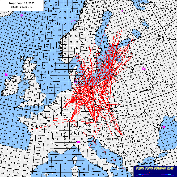 Rig: FT857 160W and 9ele TonnaODX: 1.521kmLog: 05:27 SP7NHS JO91RU 780km05:32 SM3XGV JP81OF 1.208km 05:42 OH1NG KP10PL 1.361km 0549 SM6ECA JO66FV 05:51 LY1R KO14RV 1.082km 05:54 SQ8AQX KO00RH 942km 06:04 SM7NDX JO77DR 791km 06:08 LY3JE KO26TC 1.249km 06:15 SP2HHX JO94HI 767km 06:17 SP4K nKO03HS 876km 06:22 YL3HA KO26DW 1.203km 06:24 UA2FBW KOI04IR 908km 06:29 ES2NJ KO29NK 1.375km 06:41 OH4UI KP10PF 1.343km 06:42 YL2IV KO06OF 1.011km 06:48 ES4RM KO49AL 1.521km ODX 06:52 LY2J KO14QL 1.067km 06:57 SM7CAD JO77UM 822km 07:02 SM6FBQ JO67BQ 727km 07:47 ES8TJM KO18UM 1.253km 07:50 OH2LIY KP20MH 1.441km 07:57 SP2DDV JO83VE 679km 08:01 LY1CR KO15CL 1.202km Comment: Last day of a long and breathtaking TROPO-week. I am sure, this was my best opening in 30 years on 144 MHz. UA2FBW was replieing to my CQ - deeply impressing all in all 57 DX-contacts, 24 contact > 1.000km, 1.597 km ODX, 4 ATNO grids DXCC: LA, OH, SM, UA2, ES, LY, YL and SP |